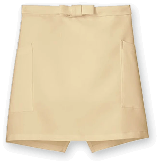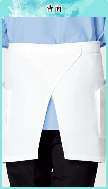 腰回りとすっぽり覆うショートタイプのエプロン。カフェなどのホールスタッフのワンポイントアクセントとして用いられる場合が多いです。